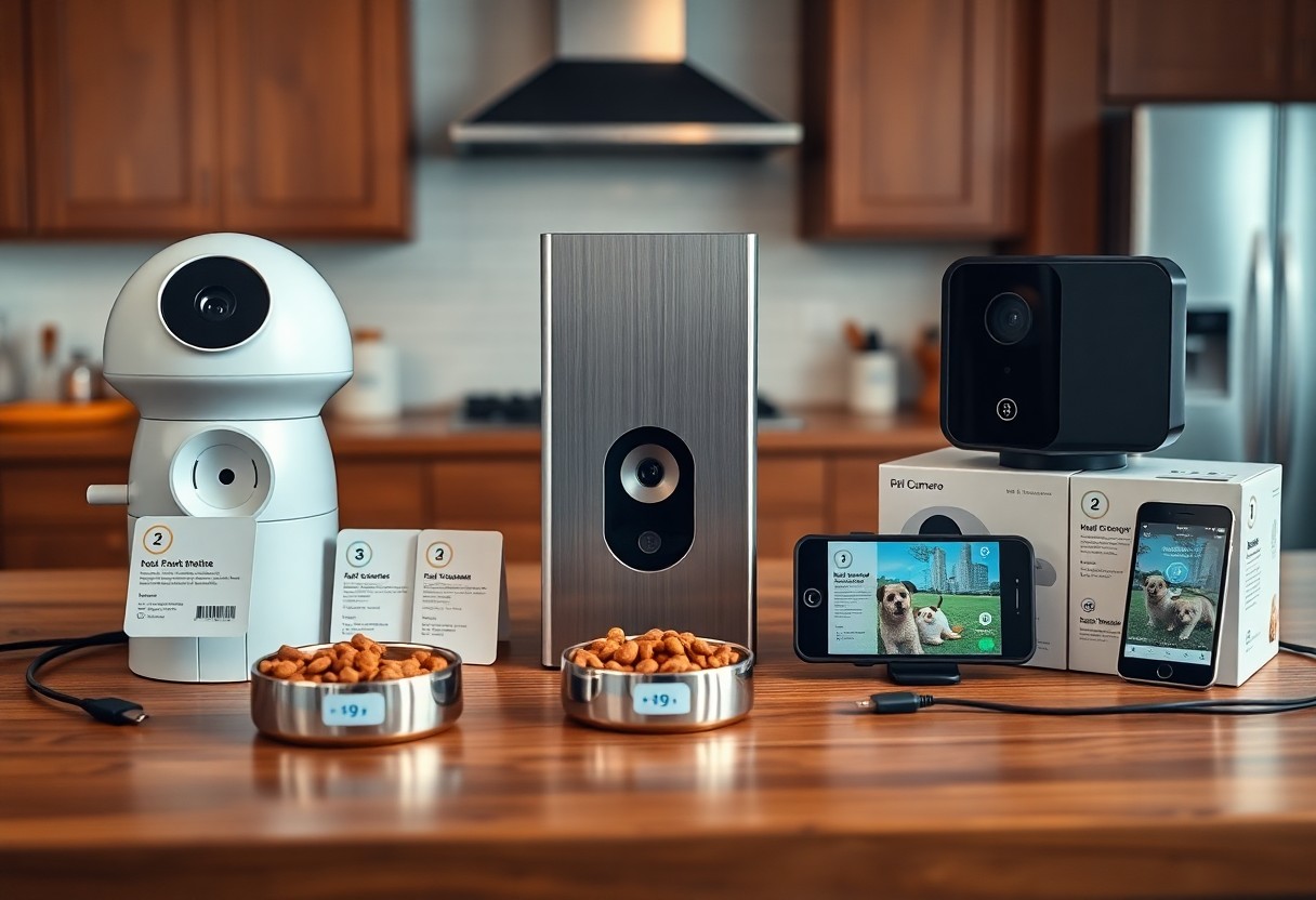 You’ll notice differences fast: cameras with 1080p or 2K video and 0.5-1.2s streaming latency make remote interactions feel immediate, while units with 20-40 treat hoppers reduce refill frequency. Two-way audio and pan/tilt deliver reliable play sessions, but battery models often give only 6-8 hours between charges. In testing, motion-triggered dispensing plus clear night vision made pets calmer and owners more likely to use features daily.