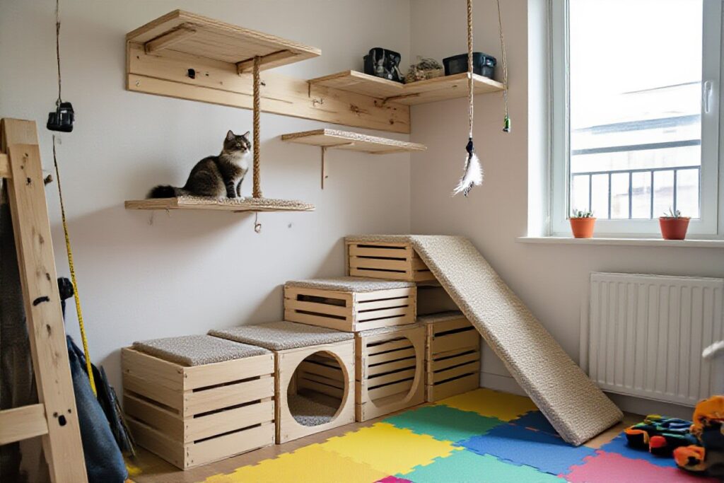 Q: How do I design a safe but fun indoor playground for cats without taking over my whole living room?