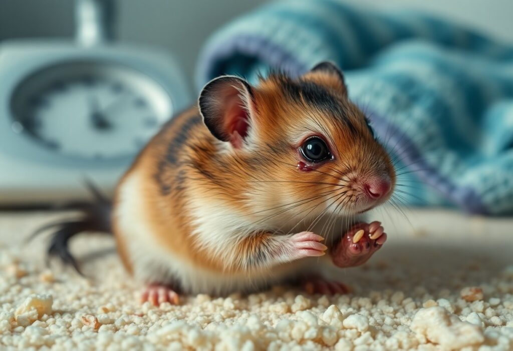 If your pet shows severe signs – severe diarrhea, blood in stool, labored breathing, inability to move, seizures, or unresponsiveness – contact a veterinarian experienced with exotic pets immediately. For milder issues you can start by isolating the affected hamster, offering fresh water and soft food, and checking the cage for hygiene problems or stressors, but do not give human medications unless directed by a veterinarian.