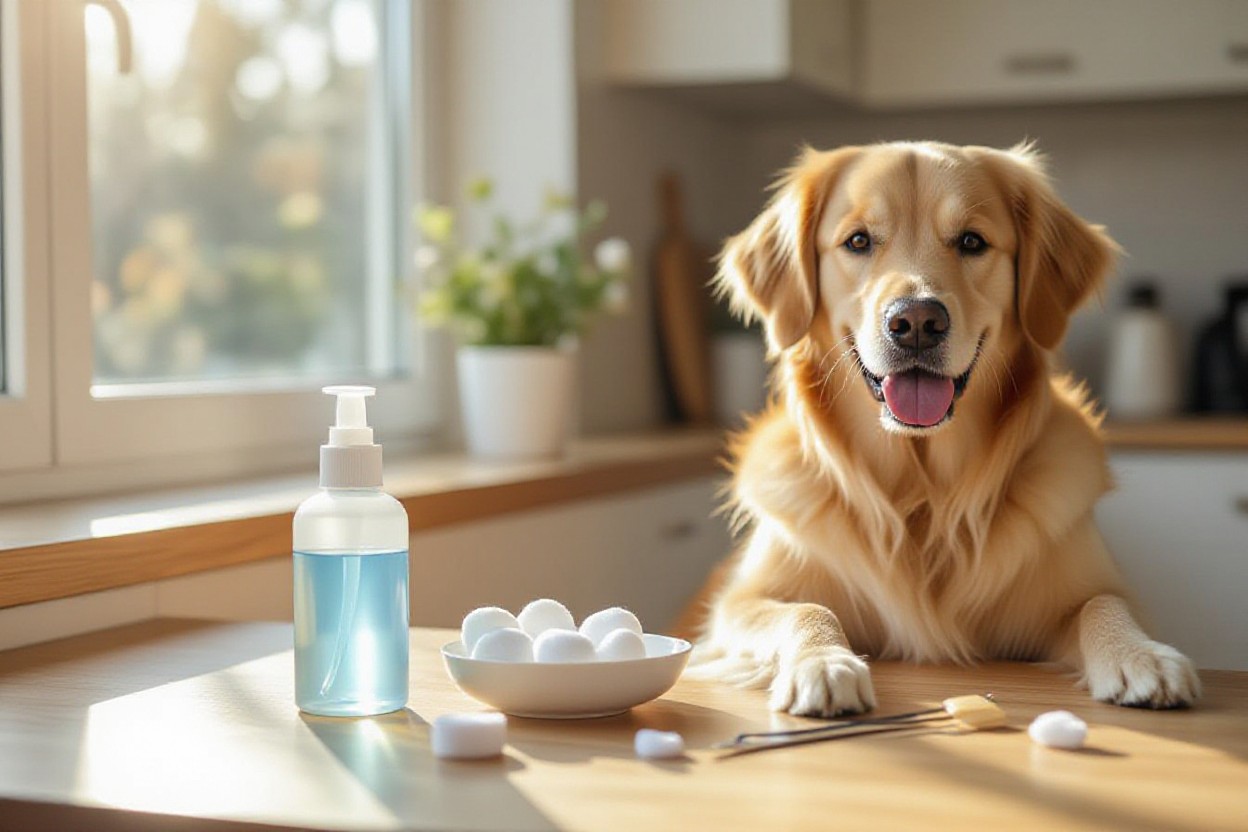 Use a veterinarian-approved, pH-balanced cleaner (examples: Virbac Epi-Otic, Zymox, or enzymatic ear wipes) warmed in your hand; fill the canal, massage the base for 20–30 seconds, let your dog shake, then wipe away loosened debris with a cotton ball. Do not use hydrogen peroxide, alcohol, or oil-based home remedies, and never insert cotton swabs into the ear canal.