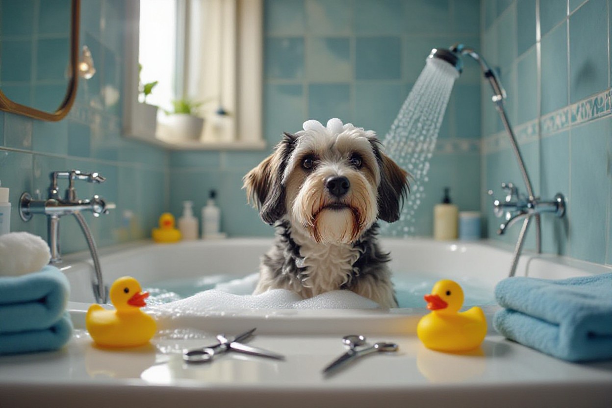 Bathing frequency typically ranges from every 4–6 weeks for most breeds to weekly for very active dogs or skin conditions; brushing frequency varies—daily for double coats (Siberian Husky, Golden Retriever), 2–3 times per week for short coats (Lab), and every few days for curly coats (Poodle). Use a dog-formulated shampoo—oatmeal for sensitive skin, medicated when prescribed—and lukewarm water at about 37–39°C (98–102°F). Dry thoroughly with towels and a low-heat dryer on breeds that tolerate it; keep blades and scissors dry and never clip wet fur to avoid uneven cuts and slippage.