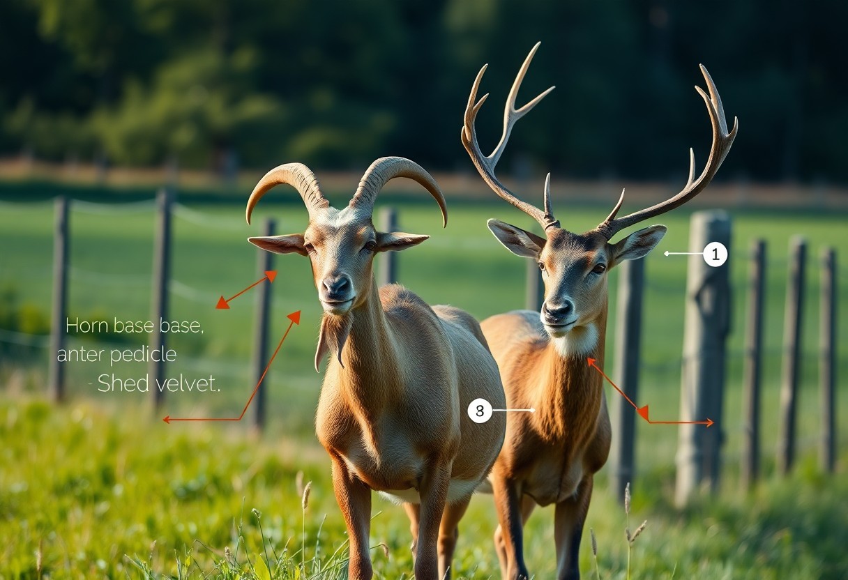 Distinguishing horns from antlers helps you identify species: goats keep permanent, keratin-covered horns year-round, while deer grow and shed bone antlers annually, affecting behavior and property risk.