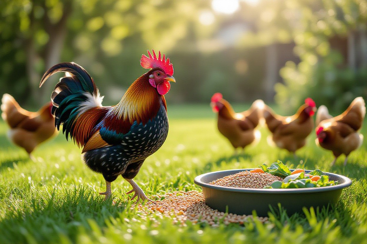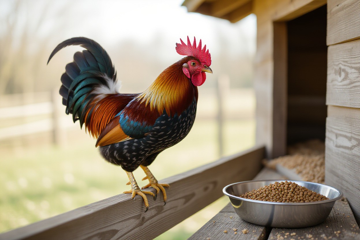 You should provide a balanced, predictable diet so your rooster maintains condition, fertility, and alert behavior. Aim for about 100–150 g (3.5–5.3 oz) of formulated feed per day for a standard adult rooster, plus access to fresh water and forage. Rotate feeds seasonally and avoid moldy grain or excessive treats, since mycotoxins and obesity are common, preventable threats to a healthy rooster.