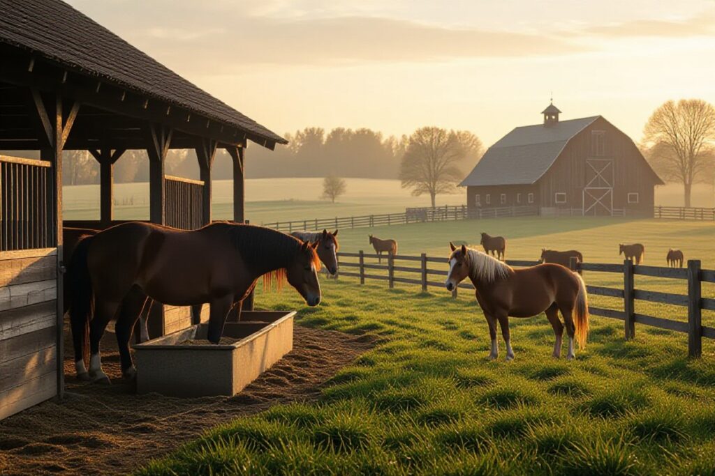 You typically start by checking each horse between 5:30–7:30 AM: groom, pick hooves, and feed hay and any concentrate — about 1.5–2% of body weight in forage daily split across meals. You’ll muck stalls, inspect legs for cuts, and either turnout for pasture or tack up for plowing/pleasure work; a 10–20 minute warm-up reduces injury. Watch for signs of colic after feed changes and be careful moving horses near gates to avoid handling accidents.