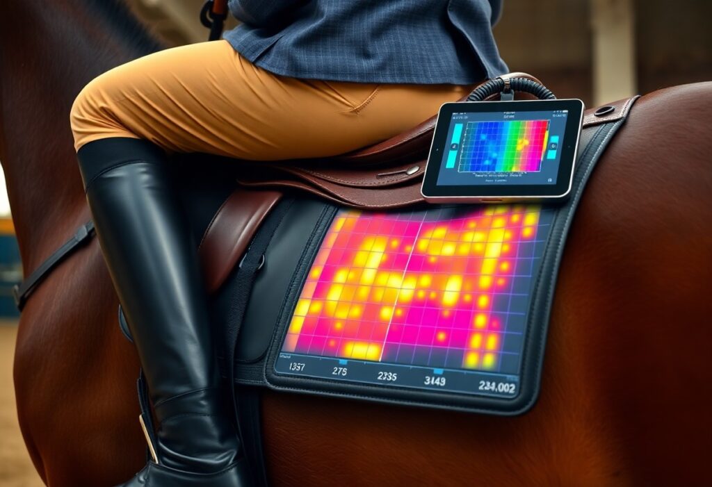 Pressure-sensing pads reveal uneven loading patterns so you can spot asymmetries that affect gait and performance; use saddle pad heatmaps to identify consistent left/right bias or sudden shifts that signal issues.