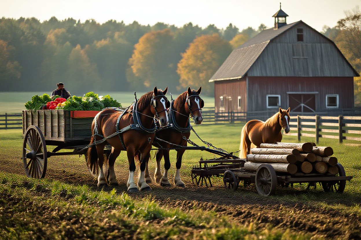 Plenty of farms also lean on horses for income that isn’t directly about plowing or hauling. Trail rides, pony camps, riding lessons, small farm weddings with a horse-drawn wagon, seasonal events like fall hayrides – all of that starts with having calm, dependable horses. So yeah, they’re working, just in a more modern service kind of way.